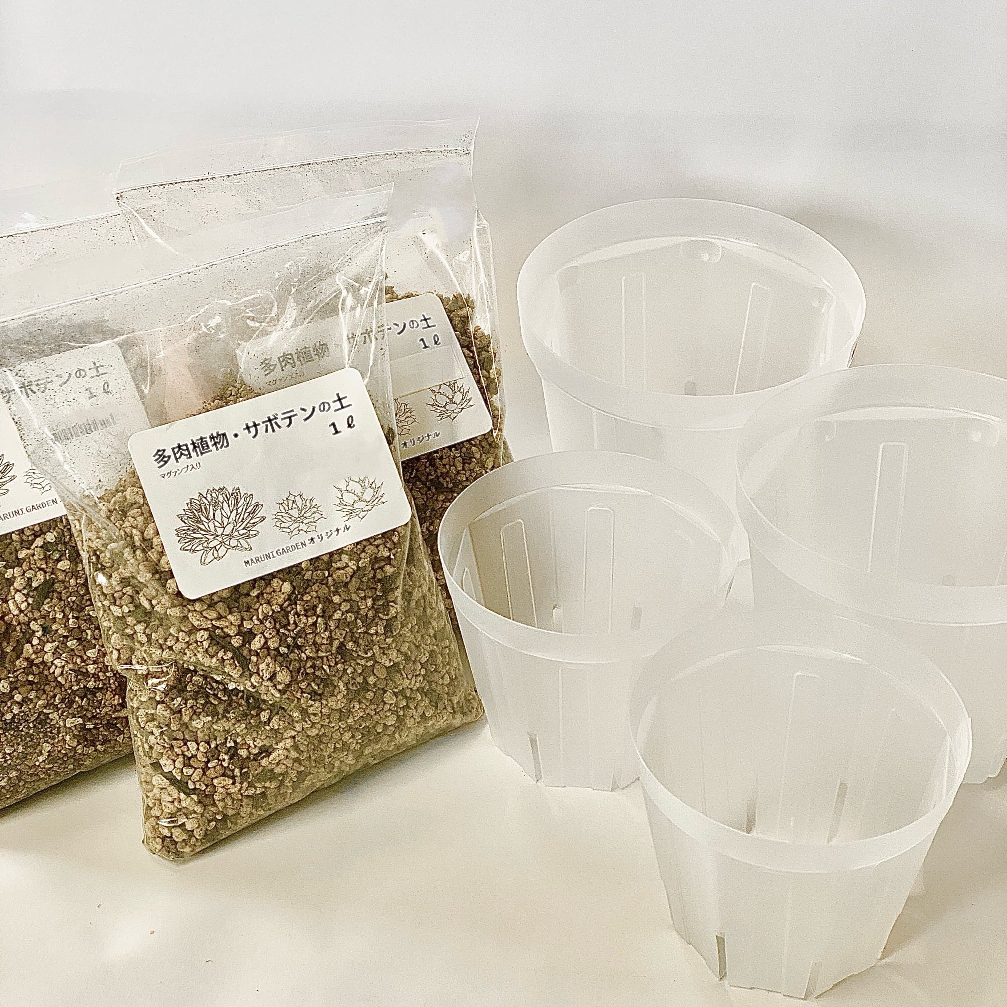 【多肉すぐ植えセット】透明スリット鉢(ショート)/オリジナル多肉の土
